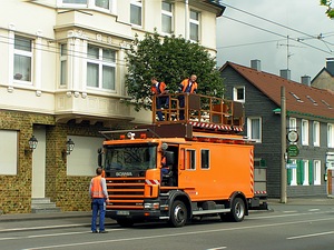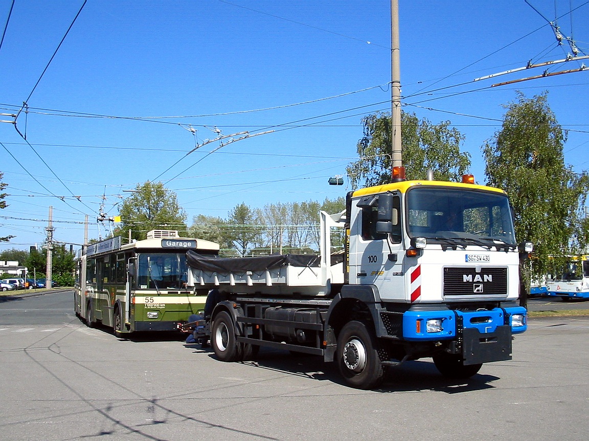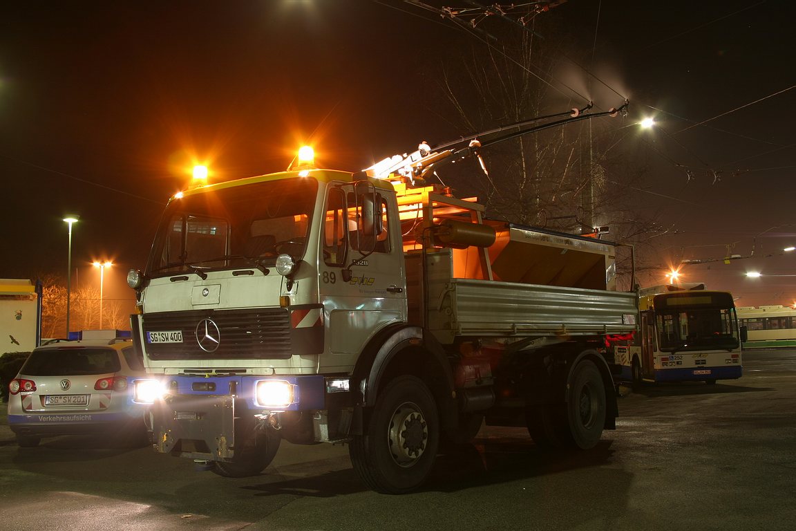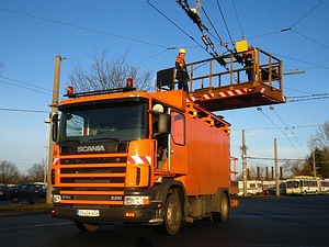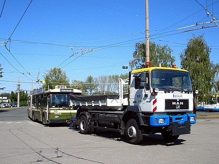 Zu einem vernünftigen Verkehrsbetrieb gehören neben den Bussen natürlich auch eine ganze Reihe von “Begleitfahrzeugen”. So hat die Werkstatt eine Vielzahl von Fahrzeugen verschiedenster Größe. Angefangen von einem VW Caddy bis hin zum neuen MAN 19.364. Ferner gibt es noch Fahrzeuge der Oberleitungsrevision (Scania) und der Verkehrsmeisterei (VW Passat, VW Golf) |